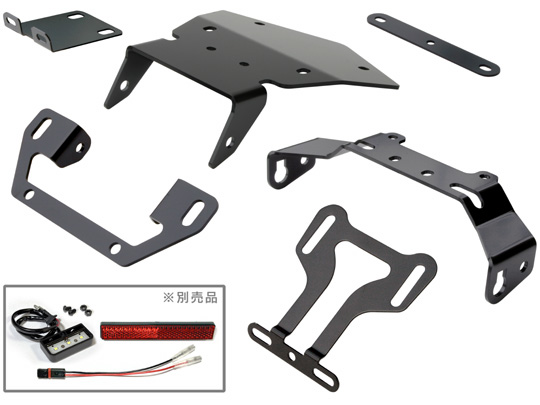 純正のウインカー&テールランプを使用し、別売のLEDナンバー灯と専用カプラー、小型リフレクターと組み合わせてボルトオンで装着できるフェンダーレスキットです。